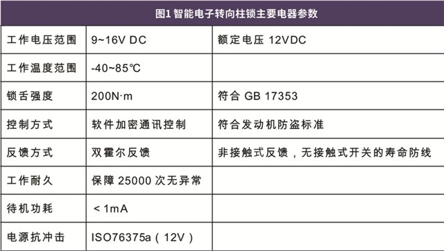 重庆先锋智能电子转向柱锁的主要电器参数如下: